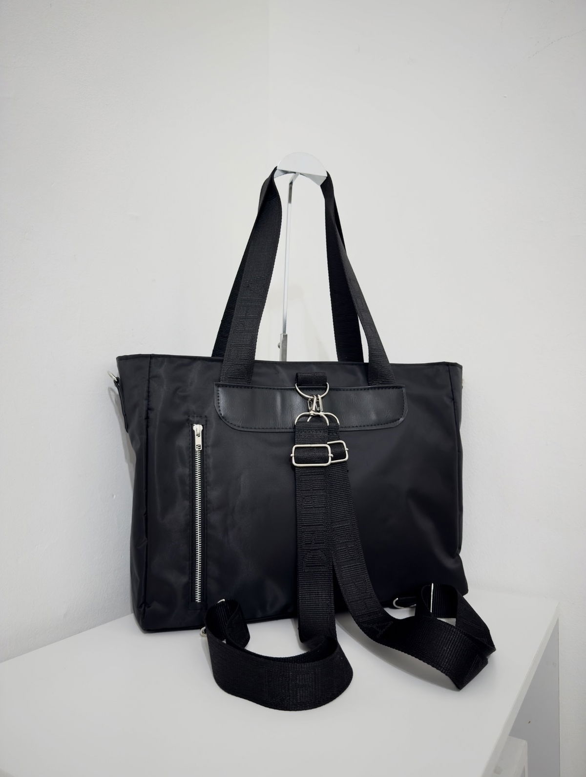Su diseño multifunción permite usarla de distintas formas según tu rutina: como bolso de mano o al hombre gracias a sus asas anchas y cómodas, como morral con su correa larga desmontable y regulable, o como mochila, utilizando las correas traseras con sistema de enganche.