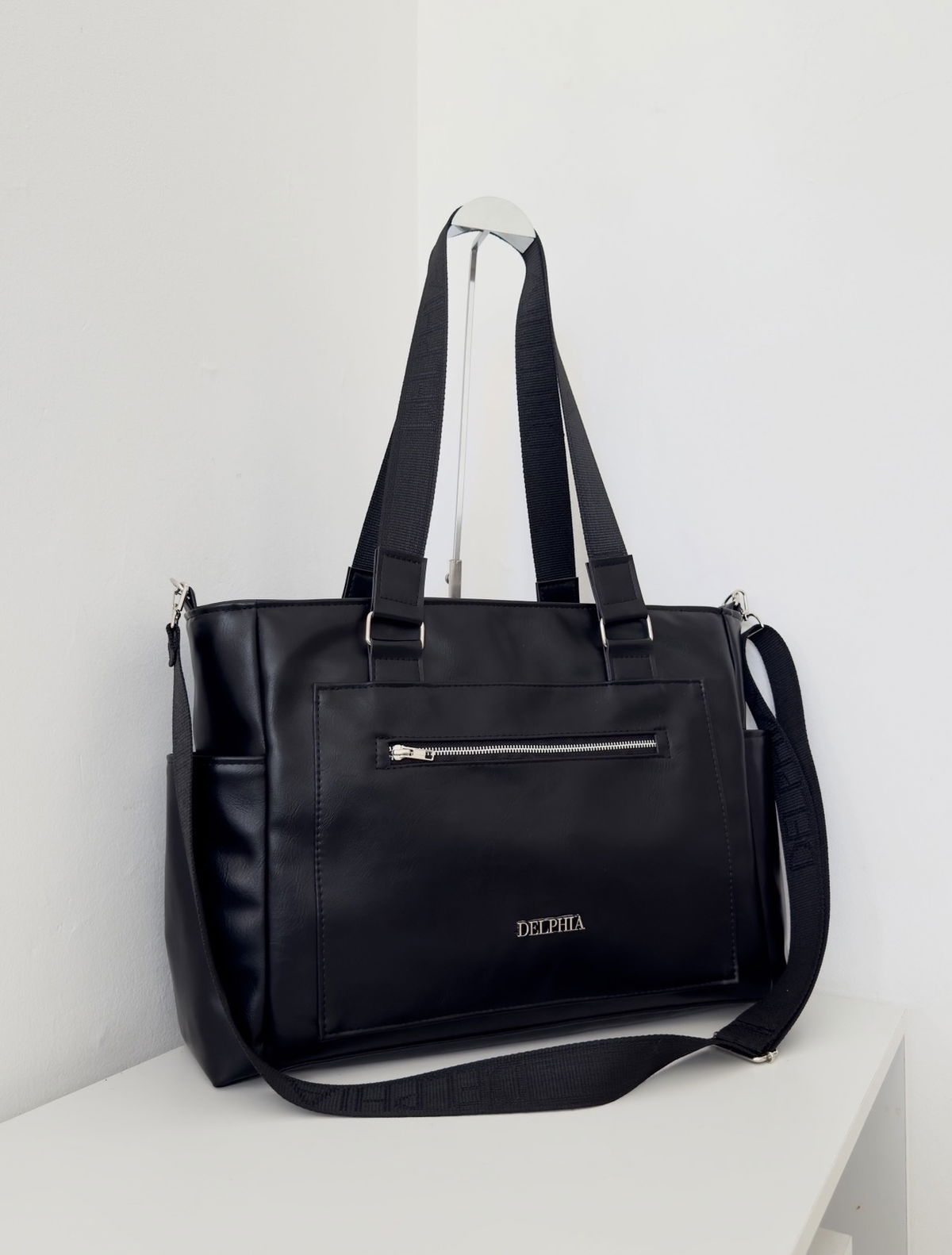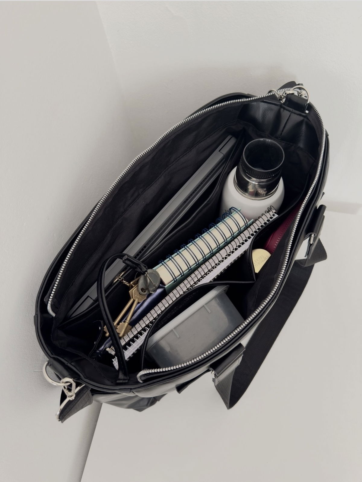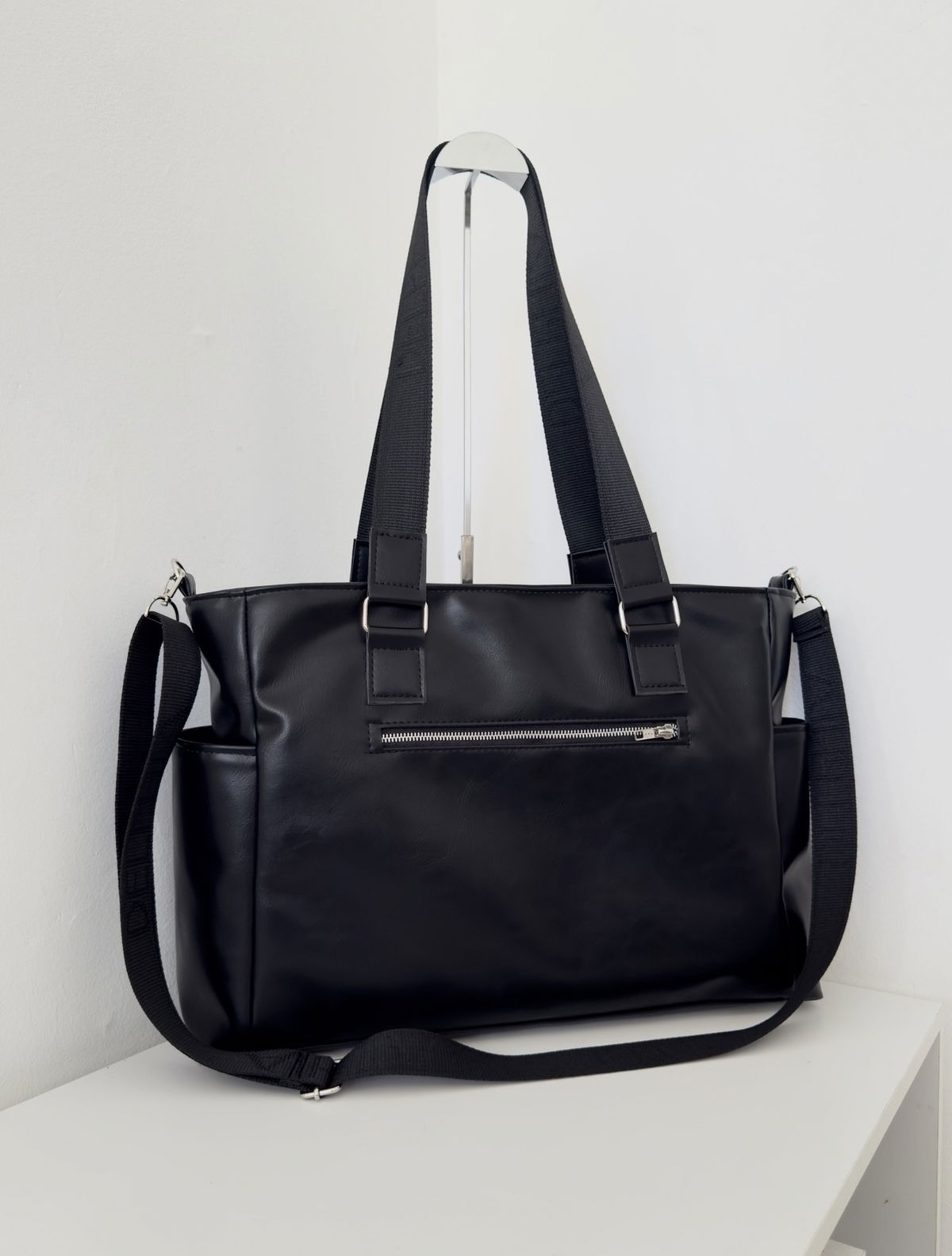 Confeccionado en ecocuero de alta calidad, es resistente, liviano y fácil de limpiar. Su interior es más grande de lo que parece: tiene un compartimento principal con cierre, portanotebook para computadoras de hasta 15.6/16 pulgadas, tira llaves y dos bolsillos simples amplios para tener todo a mano.