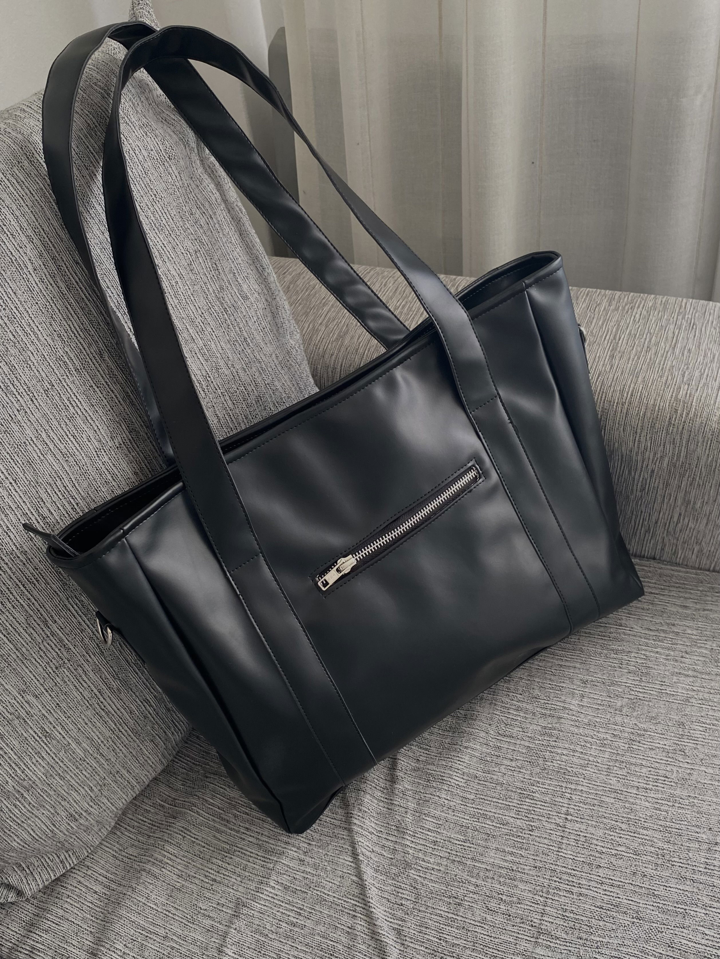 Esta confeccionado en Cuero Pu, forrado en todo su interior. Los herrajes son níquel, cierres YKK.