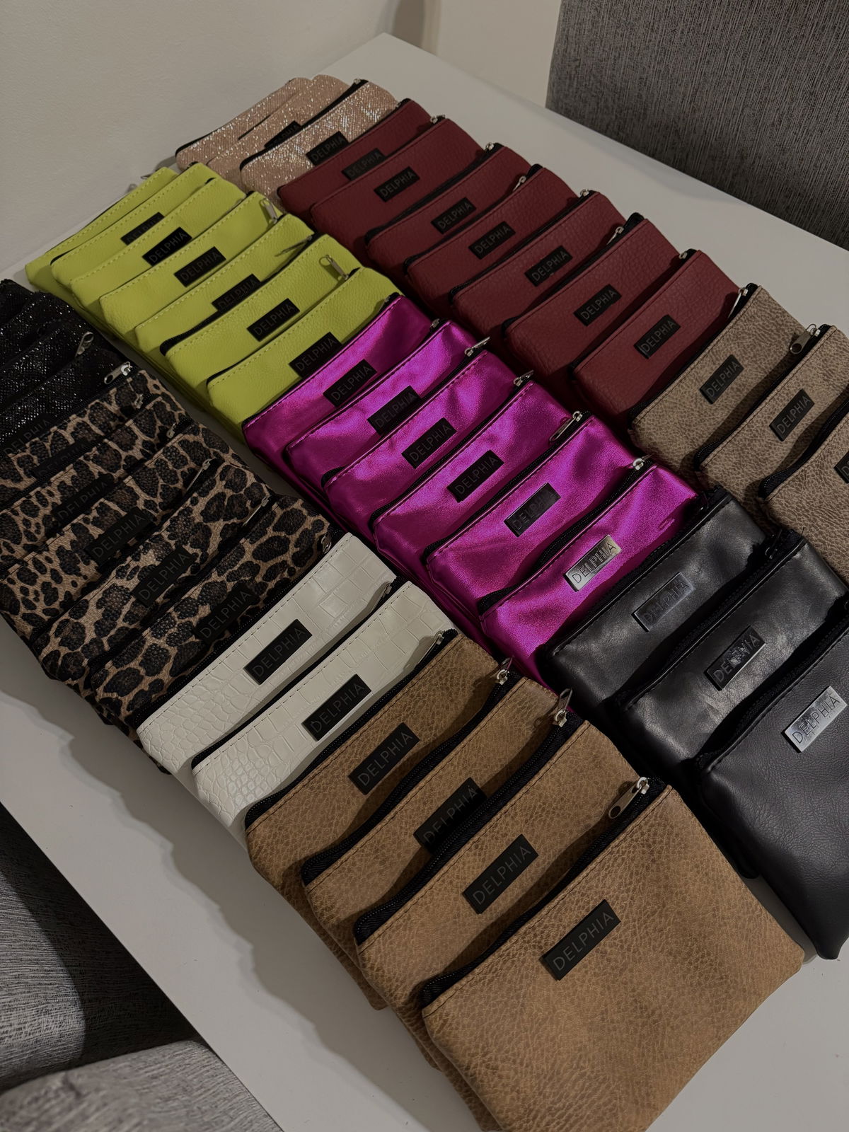 Sobres de cuero pu con cierre plástico. Forrados en el interior.