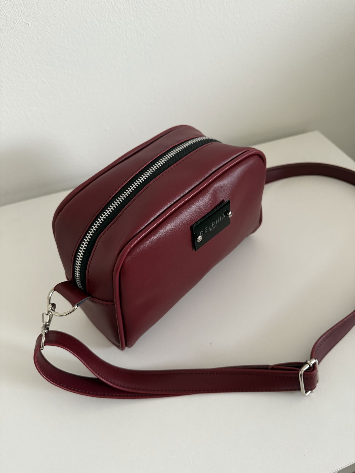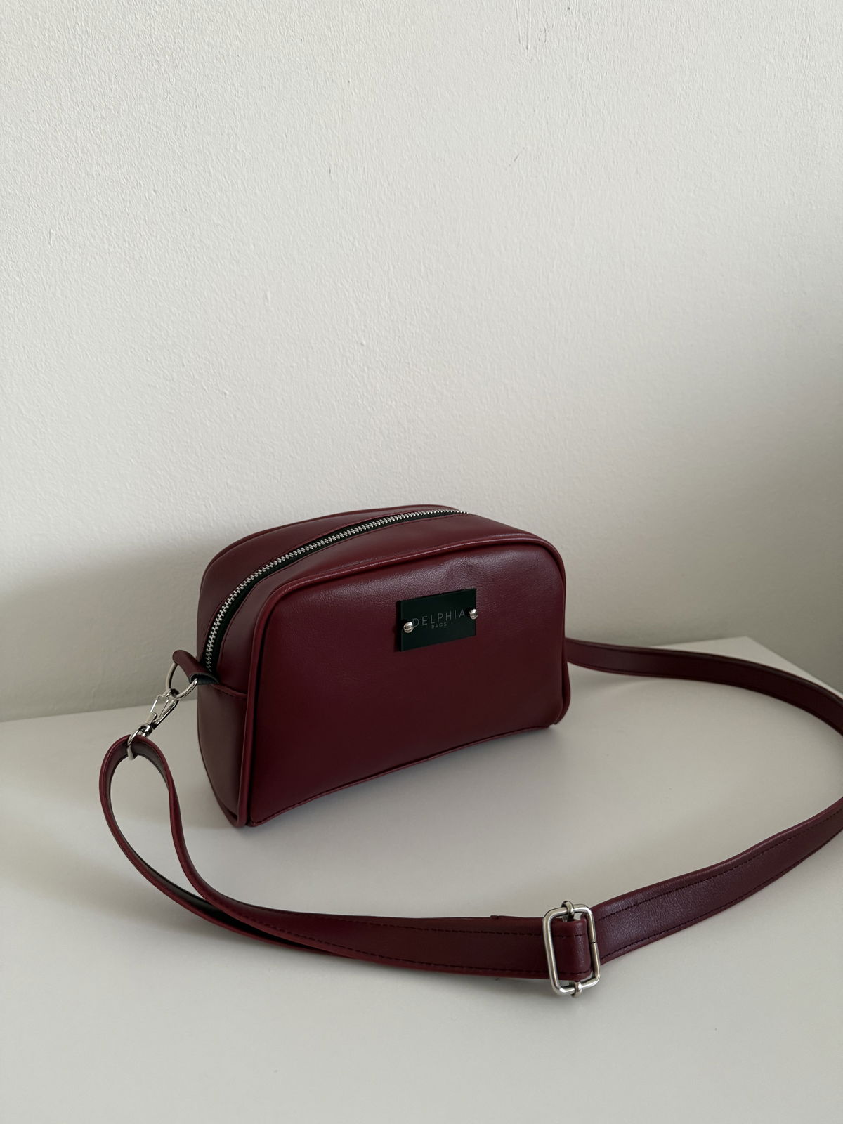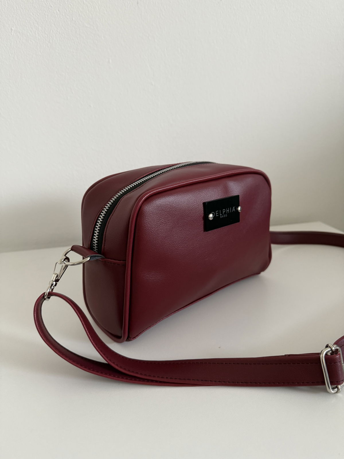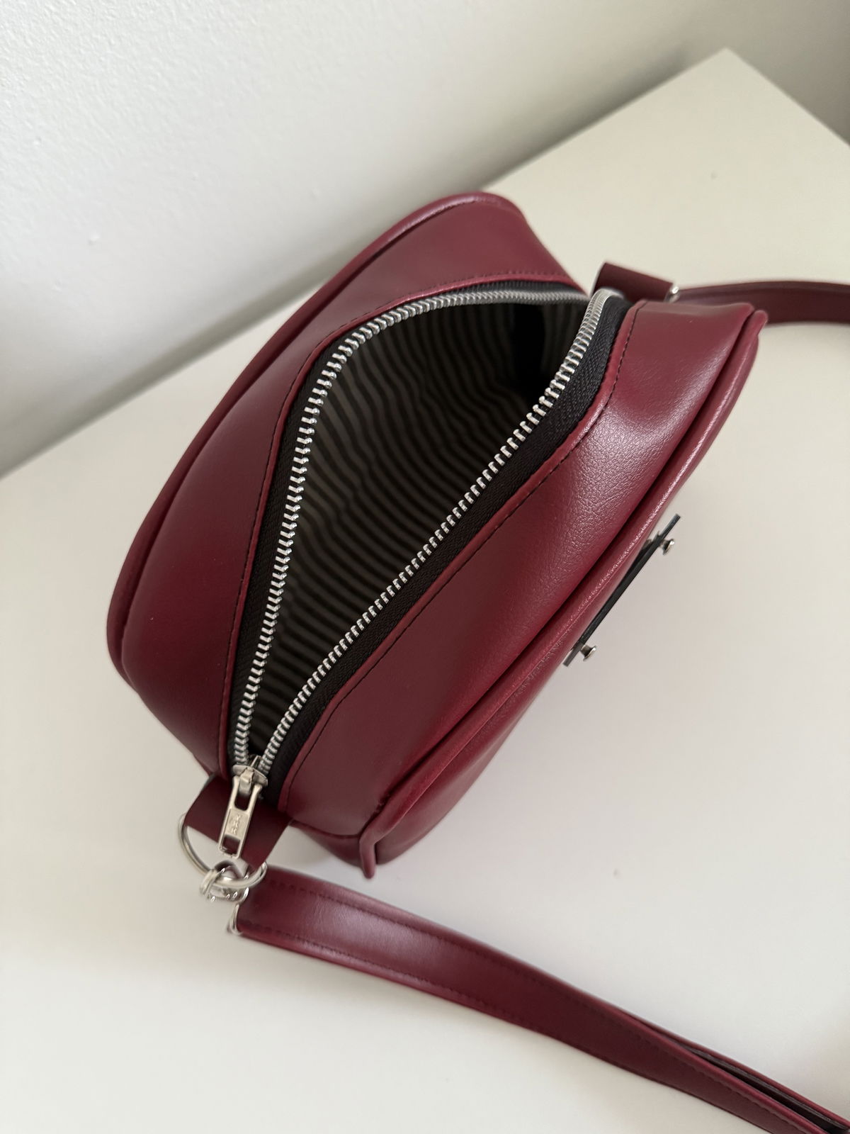 Bandolera de cuero pu importado. Herrajes niquel, cierre y deslizador YKK, interior rayado.