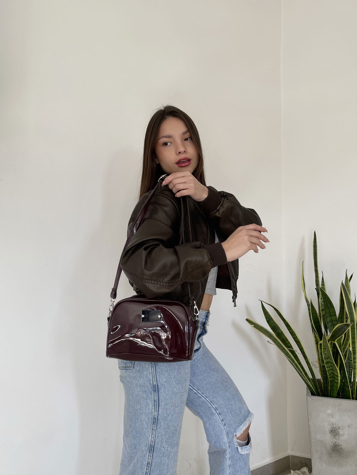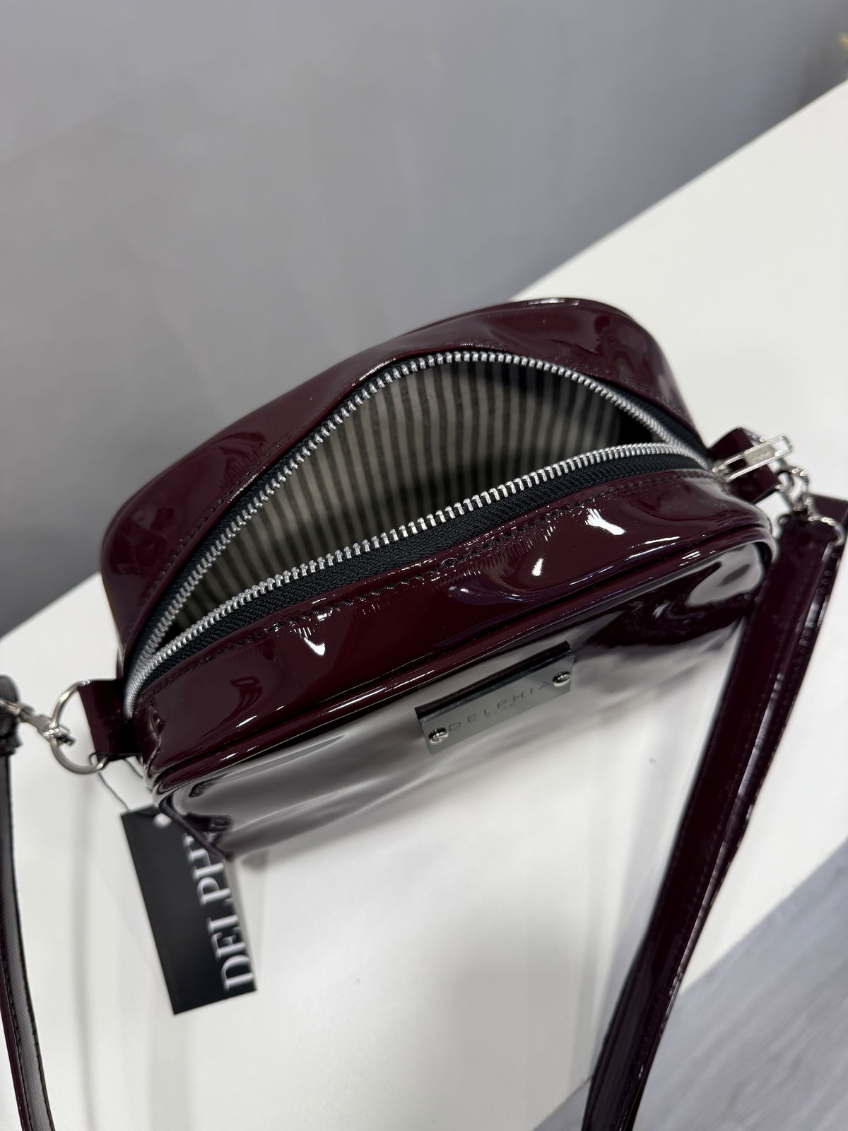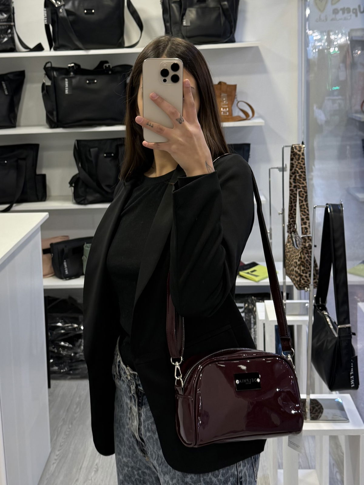 Bandolera de cuero pu importado. Herrajes niquel, cierre y deslizador YKK, interior rayado.