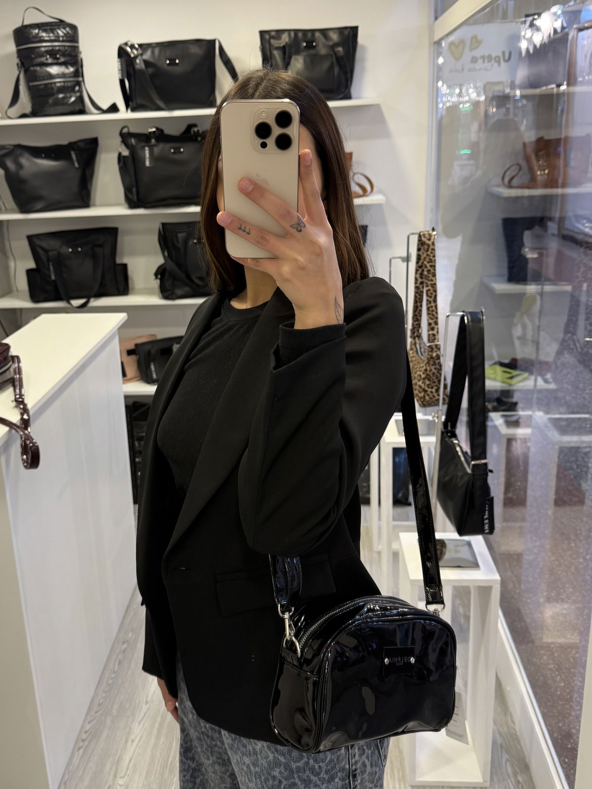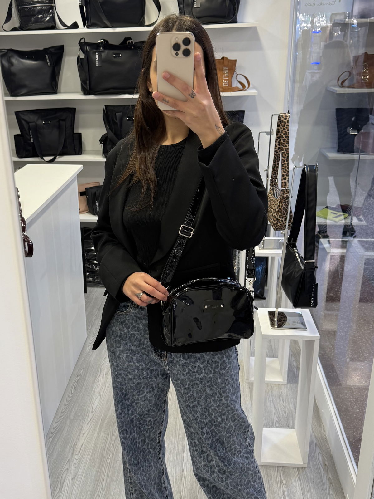 Bandolera de cuero pu importado. Herrajes niquel, cierre y deslizador YKK, interior rayado.