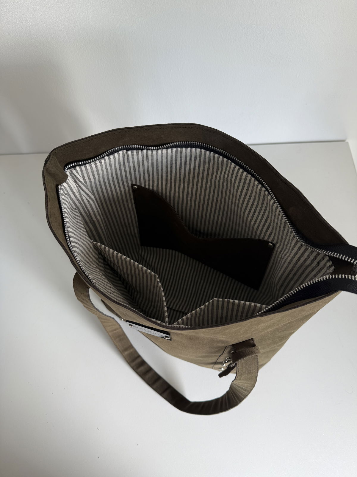 Cuenta con tres bolsillos internos y un compartimento principal súper amplio.