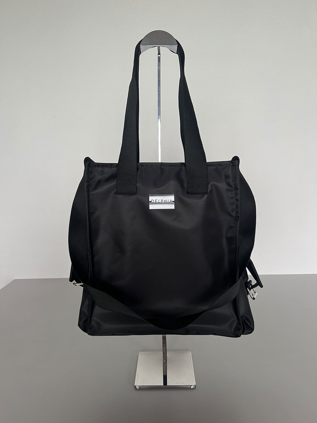 Esta confeccionado en material impermeable, forrado en todo su interior. Los herrajes son níquel, cierres diente de perro.