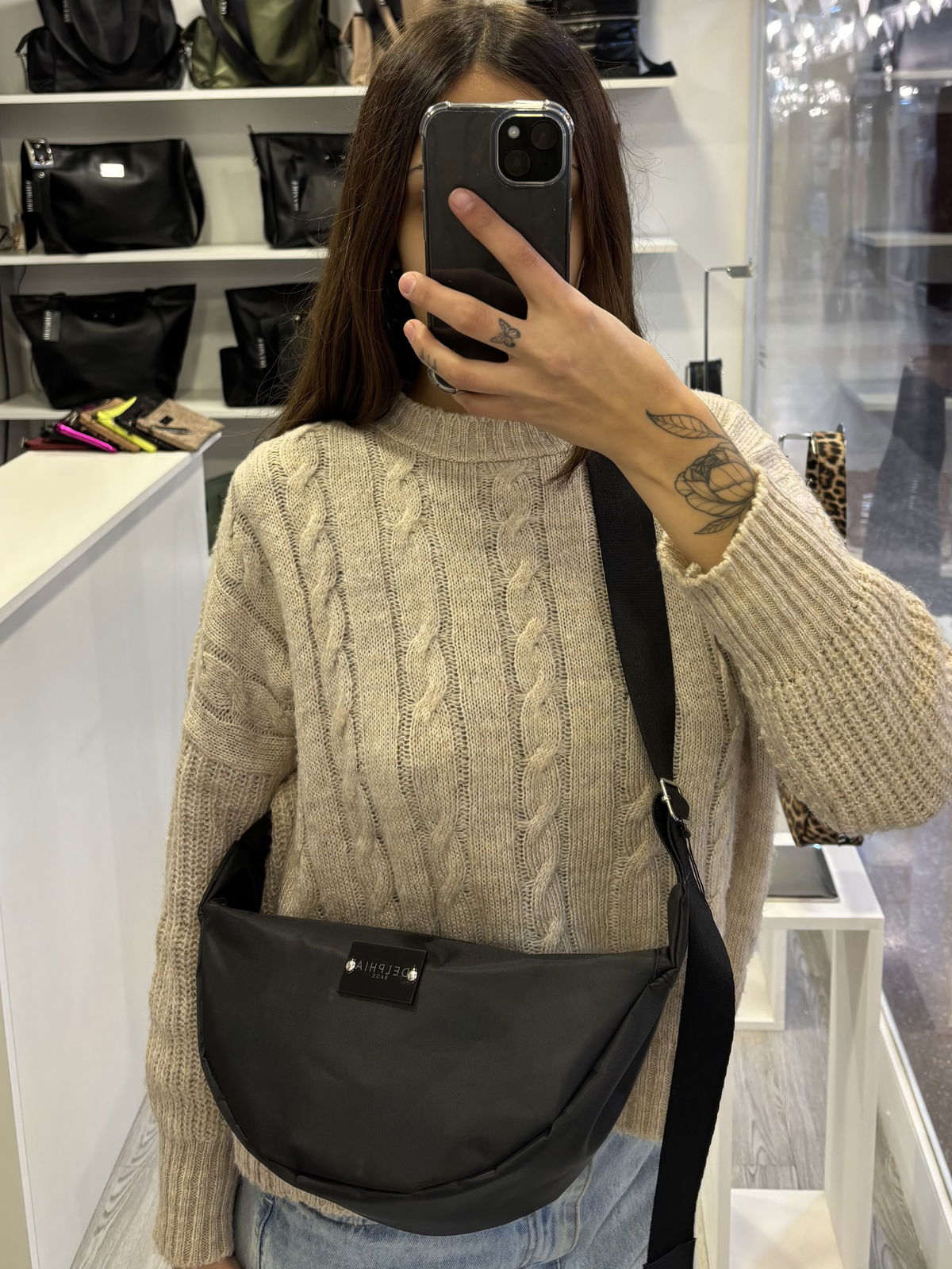 Hobo Bag Urban. Confeccionada en material impermeable. Correa sublimada lisa regulable (aprox tiene 1 metro). Cierre y deslizador negros. Bolsillo interno. Forreria impermeable.