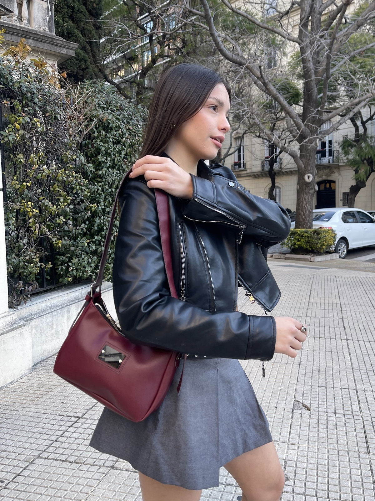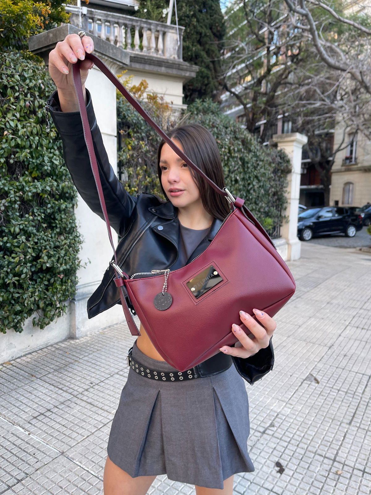 Mini UMMA. Confeccionada en cuero pu importado. Herrajes niquel. Cierre metálico. Forro negro impermeable. Accesorio dije para usar de llavero o dejar colgado en la mini.